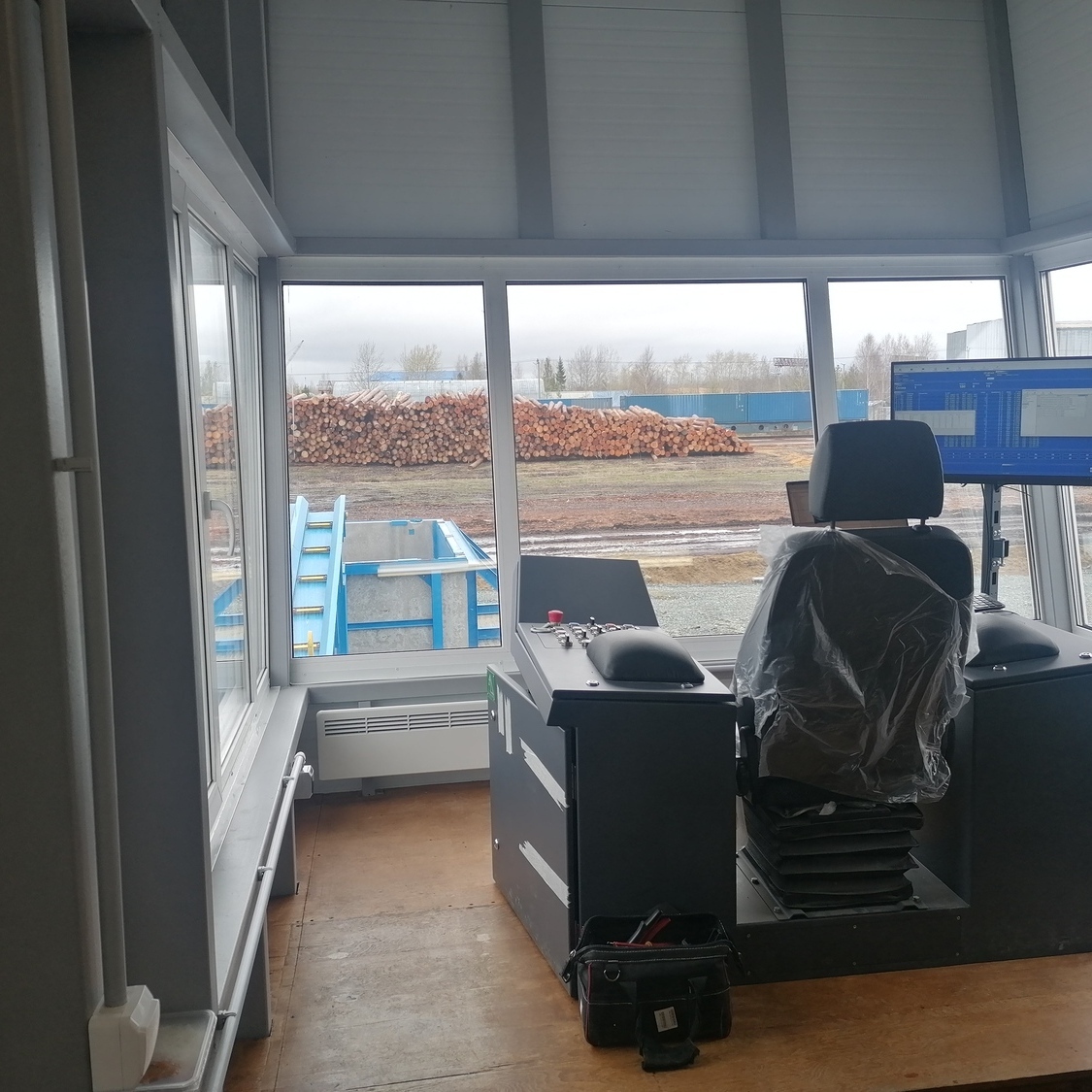 Монтаж устройства для разворота брёвен на лесопильной линии SAB Малиновского лесопильного завода АО «Югорский лесопромышленный холдинг». Установлен гидроманипулятор KESLA-700T, кабина оператора, гидростанция, выполнены электро-монтажные и пуско-наладочные работы.