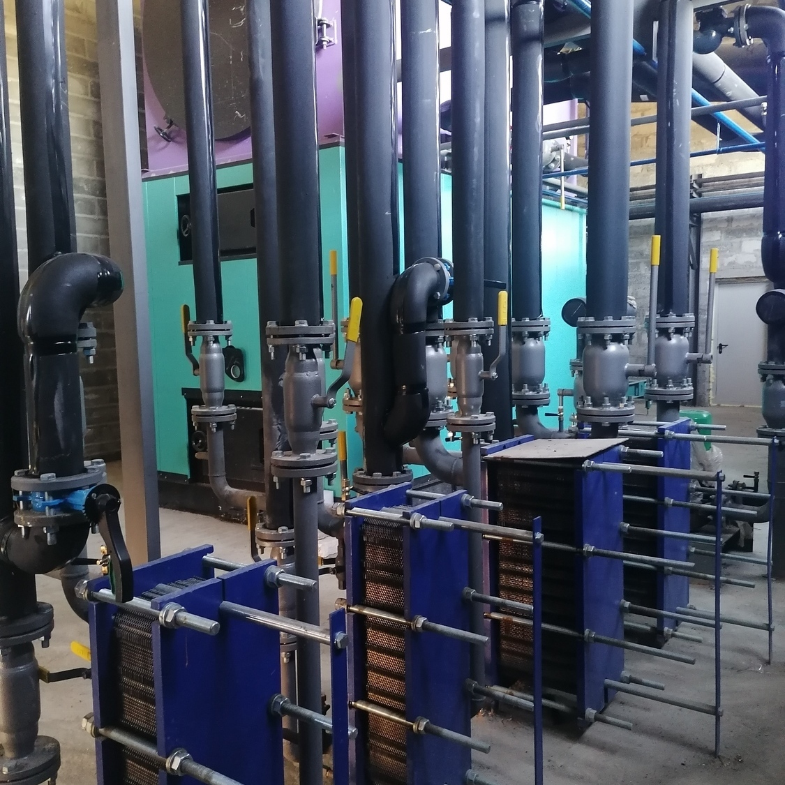 Система управления выполнена на базе программируемых модулей Siemens LOGO, в составе системы применены цифровые измерители параметров работы котельной, преобразователи частоты. Информация о работе оборудования котельной выведена на ПК оператора котельной.