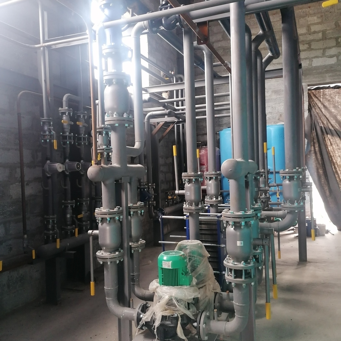 Монтаж оборудования, производства компании Gekkold, для охлаждения клеесмесителей технологической линии по производству древесных плит ДСП завода Югра-плит АО Югорский лесопромышленный холдинг. Смонтирован комплект оборудования в составе: установка для охлаждения теплоносителя «Чиллер», выносной конденсатор, гидромодуль, внутрицеховой трубопровод из PVC-U под склейку.